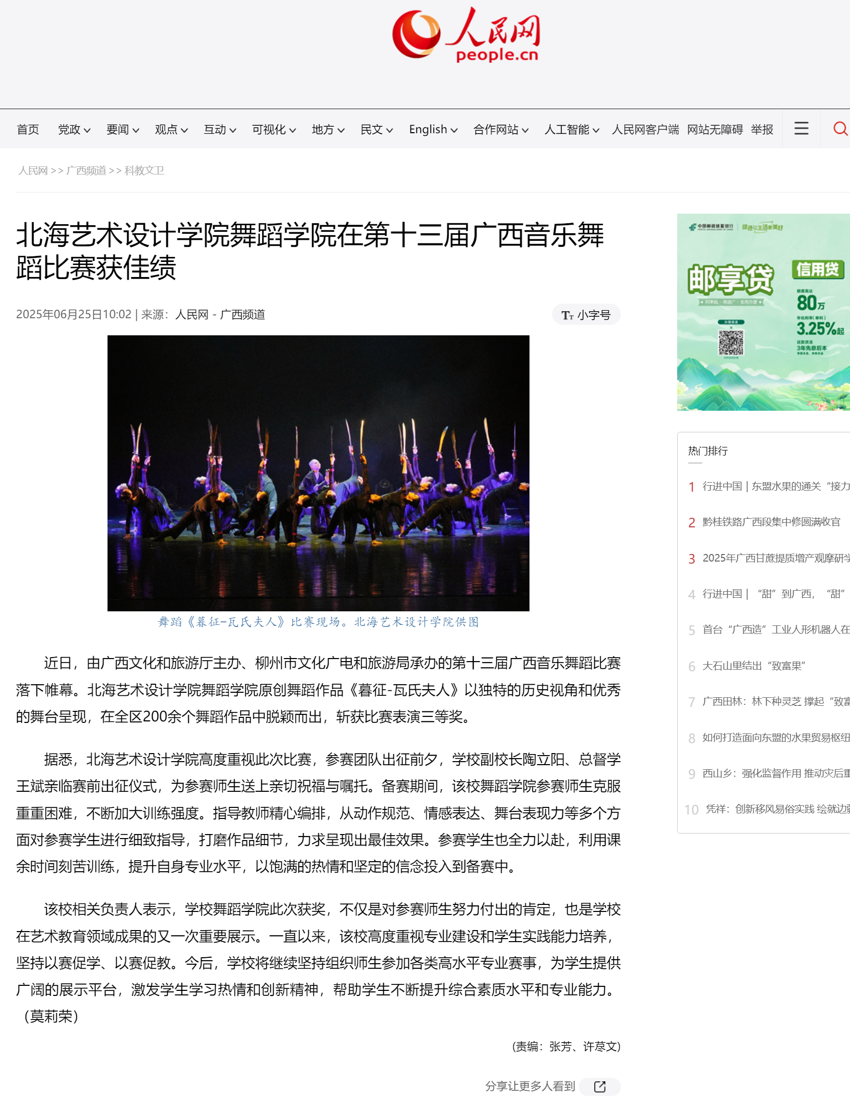 人民网:北海艺术设计学院舞蹈学院在第十三届广西音乐舞蹈比赛获佳绩