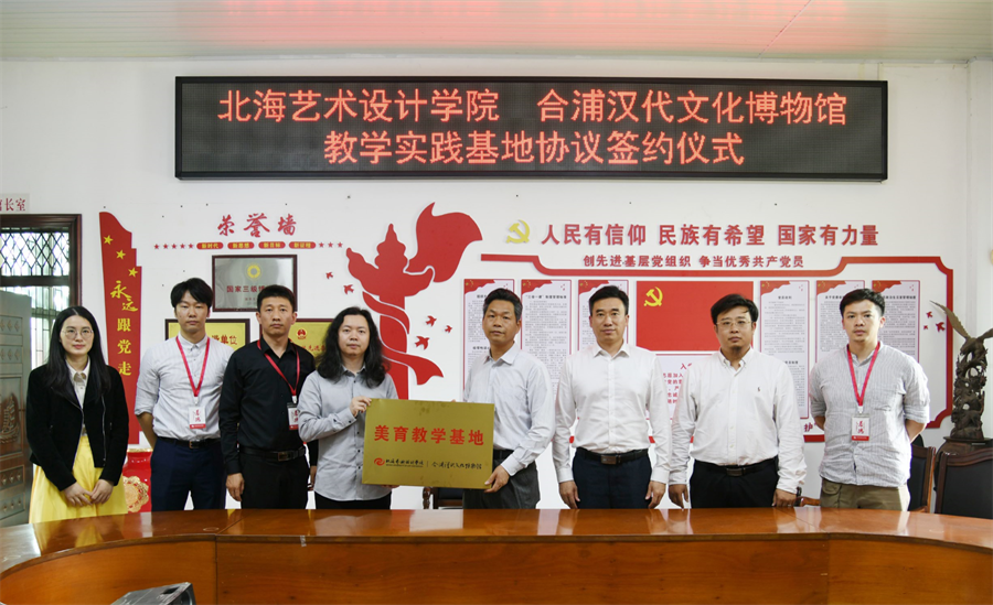 近日,北海艺术设计学院与合浦汉代文化博物馆签订了合作协议,挂牌成立实践教学基地、美育教学基地,通过文化创意传播汉代历史文物,利用文创产品推广经典文化,推进中华优秀传统文化教育,铸造文化育人品牌,增强年轻学子的文化自信。