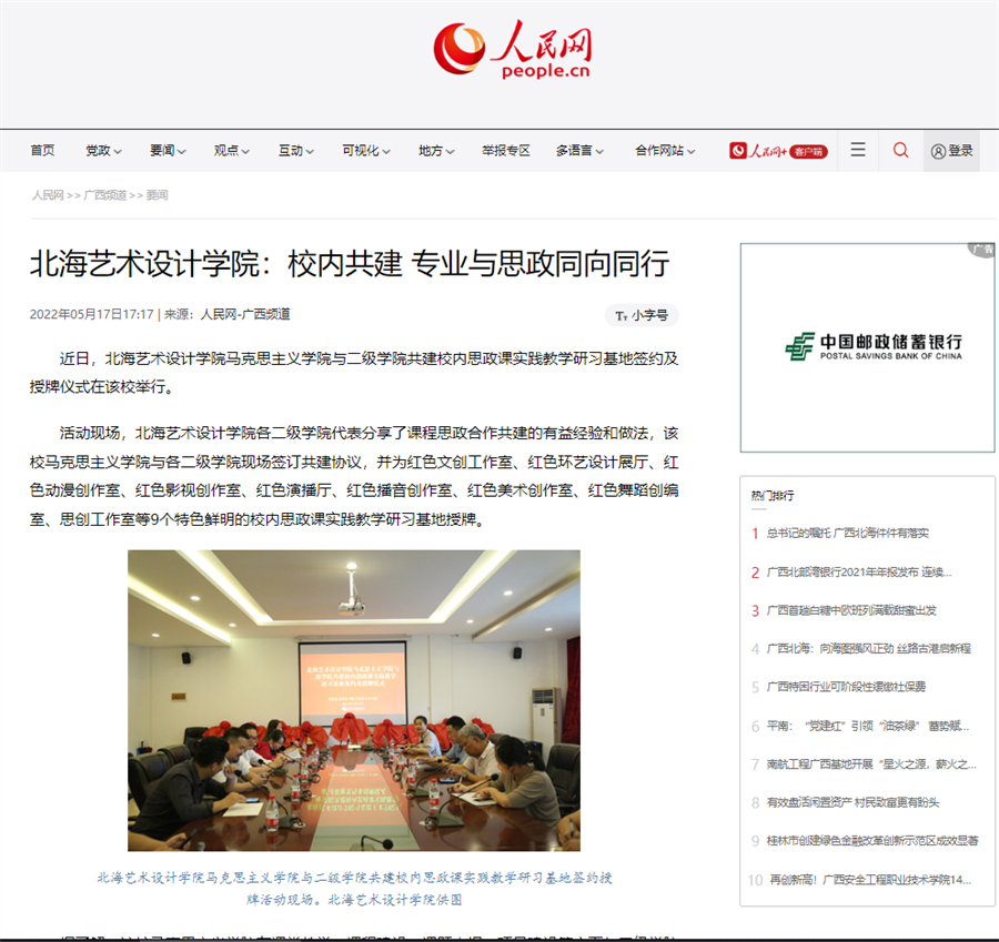 人民网:北海艺术设计学院校内共建 专业与思政同向同行
