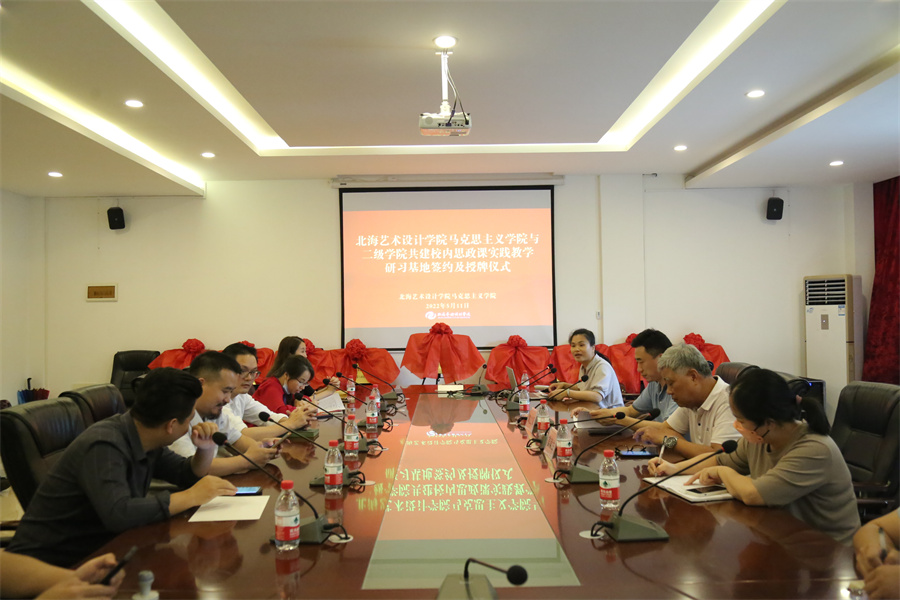 近日,北海艺术设计学院马克思主义学院与二级学院共建校内思政课实践教学研习基地签约及授牌仪式在该校举行。