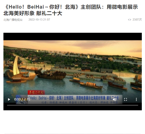 北海广播电视台:《Hello!BeiHai~你好!北海》主创团队用微电影展示北海美好形象,献礼二十大