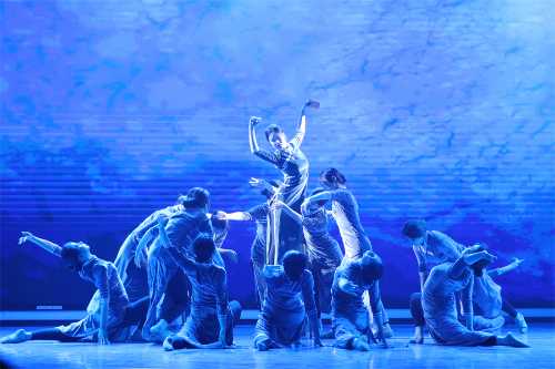 晚会开始,开场舞《溯跃》带我们穿越时空,以毛泽东等为代表的中国共产党人的奋斗画卷铺展眼前。
