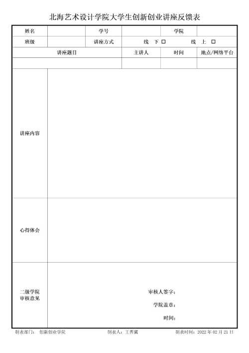 北海艺术设计学院大学生创新创业讲座反馈表.doc