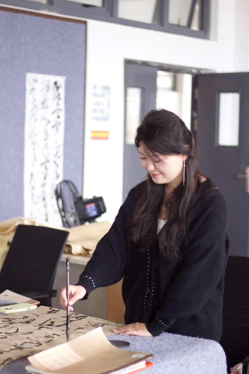 即将面临毕业,陈思思也表示在规划中增添了对将来的设想,对于书法的探索不会停止,努力丰富提升自己。同时她也想和学弟学妹们说,学书道路漫长,欲速则不达,凡事慢慢来,务必一步一步的稳步前进。(许国恩 陈思思 摄)