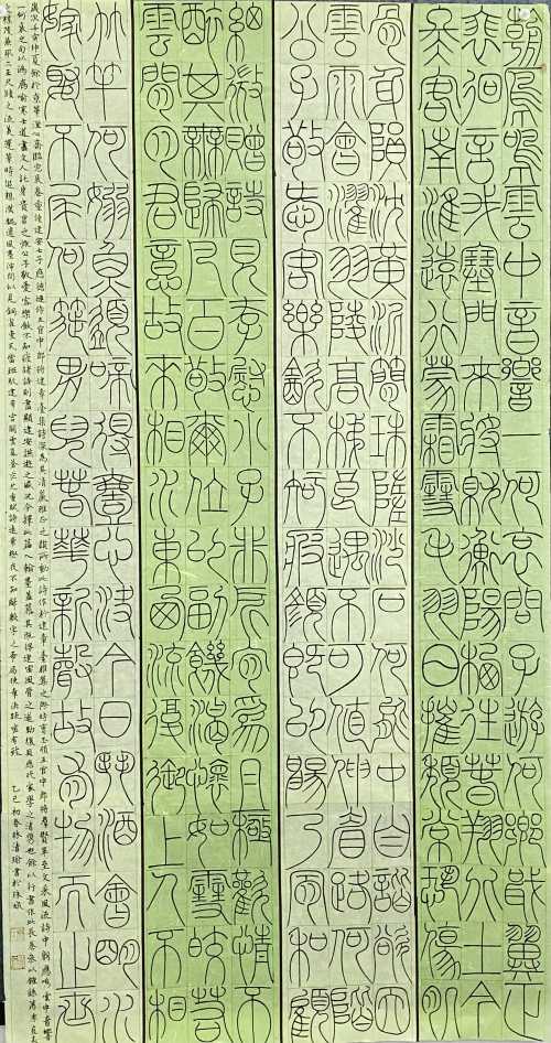书法学院构建了现代化的学科培养体系,将“以文养书,以书育人”作为教学特色,为学生成长搭建了坚实平台。尤其“书法临创转换课程”,林清瑜受益匪浅,如篆书、隶书临创转换课程,通过量化分析书风源流,引导学生在传统与创新间找到平衡。她以《李阳冰三坟记》笔意融合现代装饰性结构,以行草书章法重构《里耶秦简》,逐步明确个人创作方向,展现了学院课程在激发创新思维上的成效。