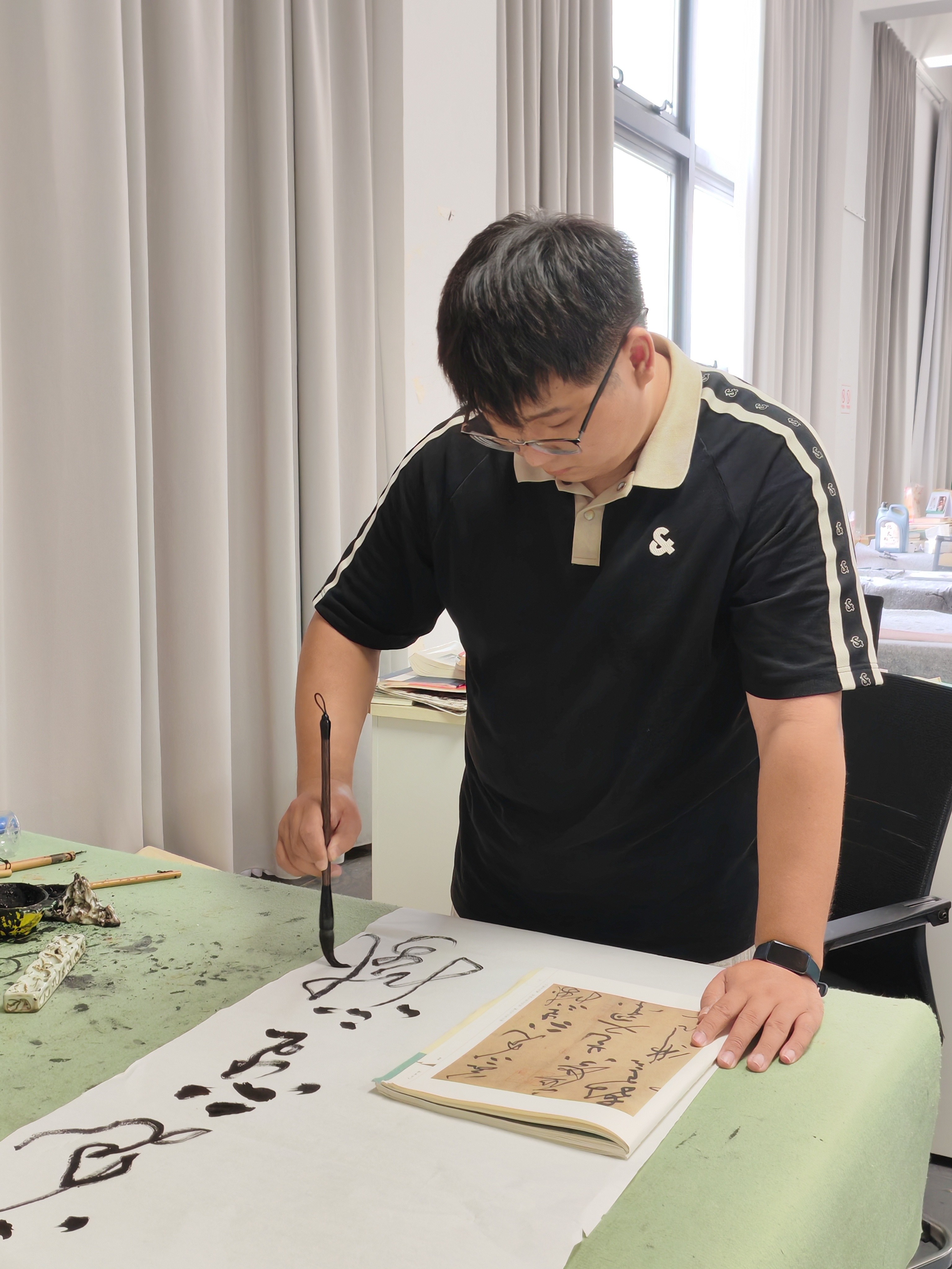 面对学弟学妹,杨志远分享心得时语气真挚:“书法就像一条流淌的文化长河,每次提笔写字,既是和古人对话,也是给未来的自己留一份念想。”