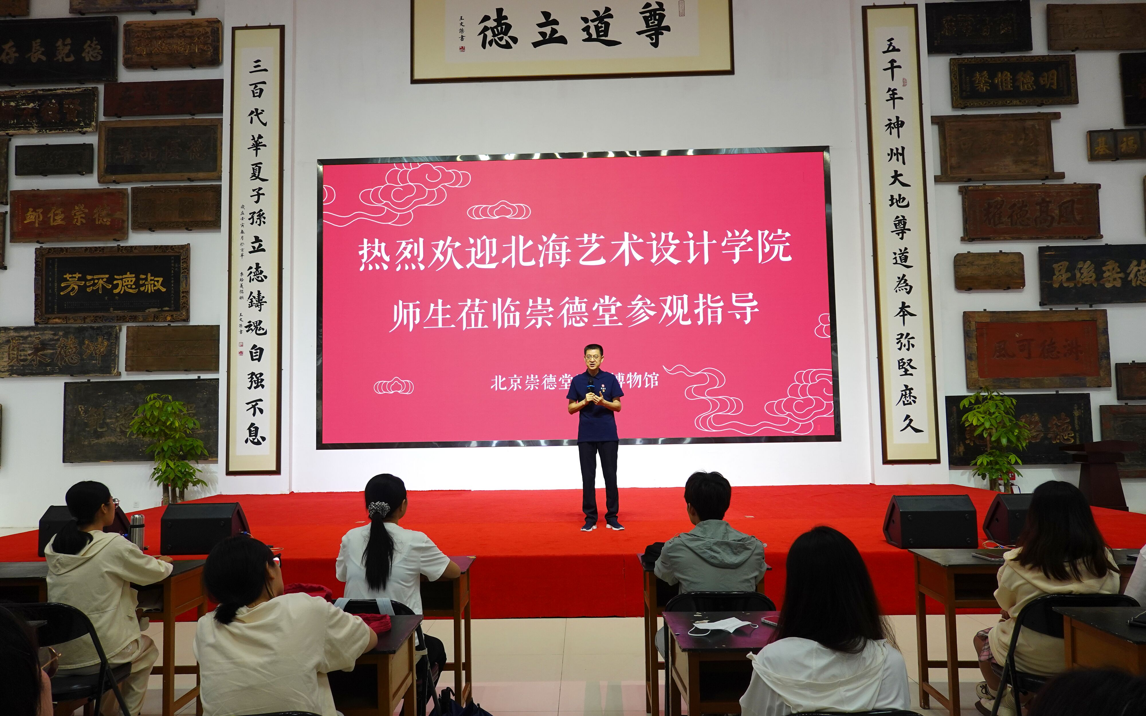 崇德堂博物馆馆长李培义对本校师生的到来表示了热烈的欢迎,并在大会上叙说了崇德堂匾额文化的由来与传承,提出了“道德”对现代年轻人的重要性。