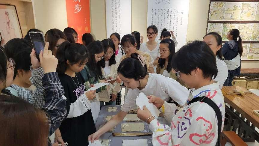 本次参观,我院学生在工作人员的带领下,走进了研学体验馆,了解到古法传拓、古法造纸以及活字印刷术的制作和使用流程,深刻体会到中国古代人民的高超技术。随后同学们来到了文创馆,了解了崇德堂博物馆“美德共济”的文创理念——从文字出发,通过现代创新,将中国美与道德结合起来,从而展现在更多人面前。