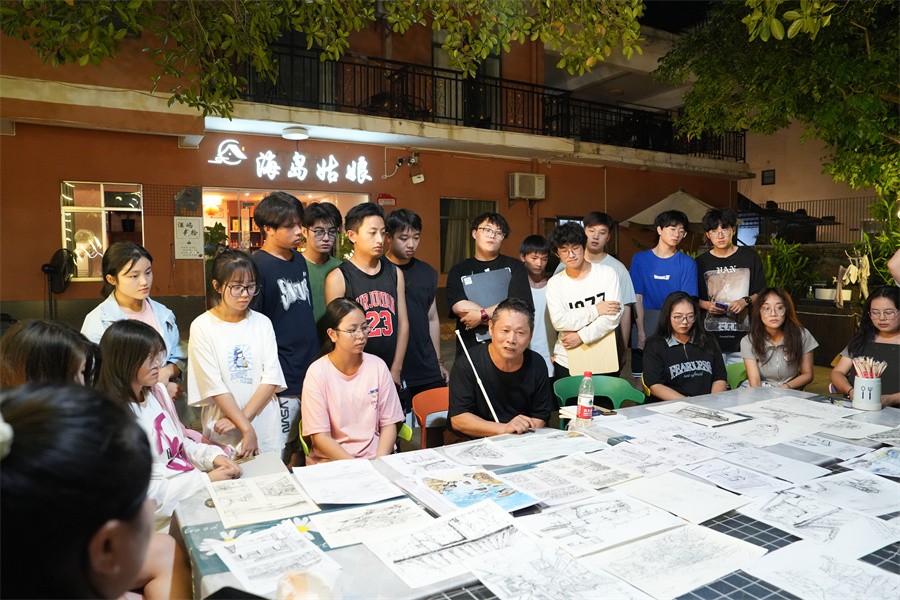 各专业教授和任课老师也纷纷深入实践活动,开展主题授课,对学生作品进行讲解指导,点评作品存在的不足与优点,并对学生创作过程中的疑难问题认真解答,给予学生新的创作视角和创作思维。期望同学们拓展视野,切实融入当地民众生活,感受当地民俗文化,将其与专业学习知识理论融合,提高自身感知能力、观察能力、转换能力,将学习与生活紧密结合。