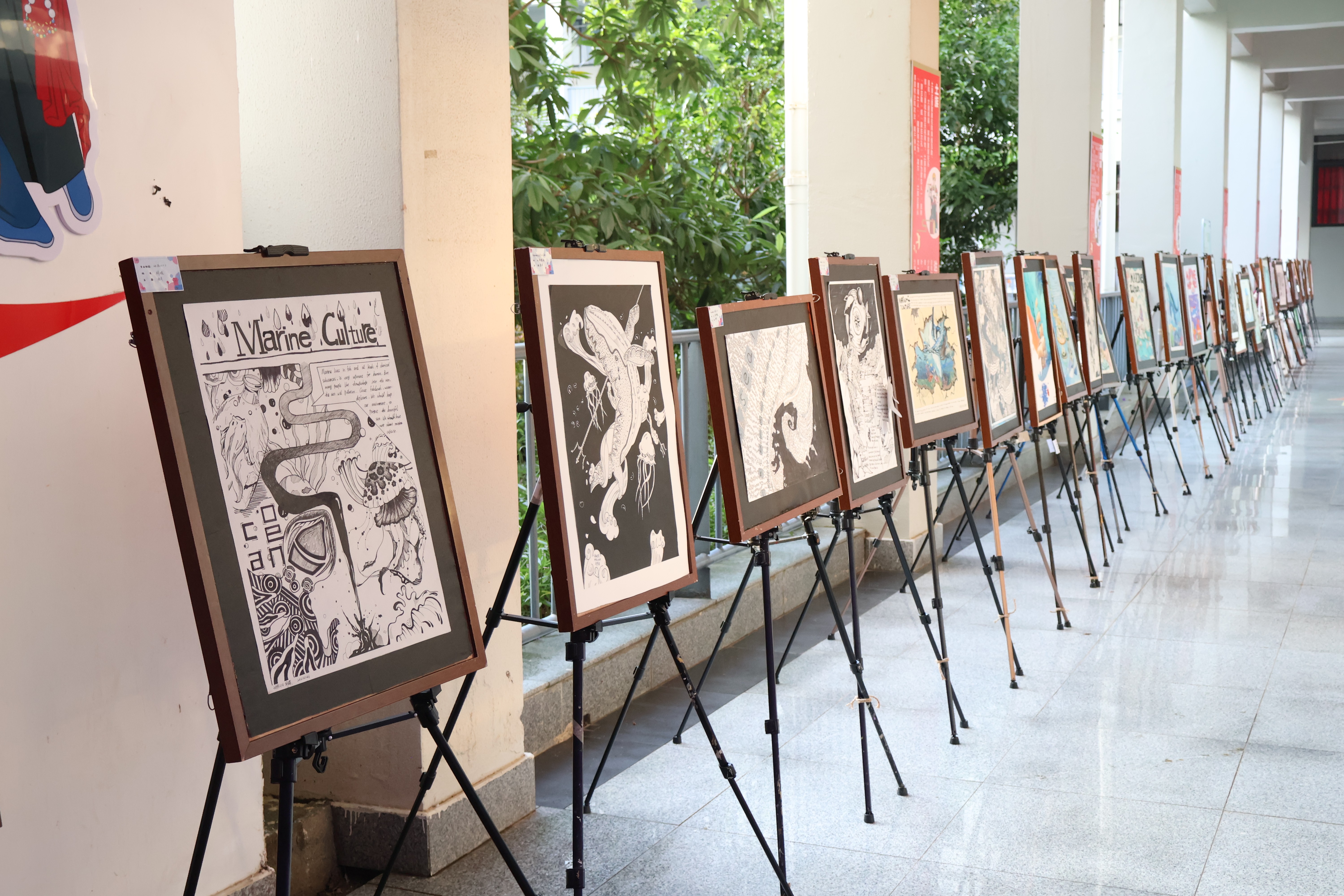 20221026日,我院外语教研室举办的英文增添文化新活力,艺术展现英文新应用暨第英语+专业优秀作”于西校区公德楼一楼隆重开展。学校党委书记张阳,党委书记韦静月,副校长邱杰等校级领导,第四党总支书记刘承初,通识教育学院党支部书记周斌,通识教育学院副院长黄丹,西北师范大学北海附中副校长杨旭东教授,广西教育学会美术专业委员会理事刘阳奎教授,高级室内设计师、收藏家龙文先生,美术学院雕塑专家波波夫·康斯坦丁以及全体外语教研室教师应邀出席了开展仪式。