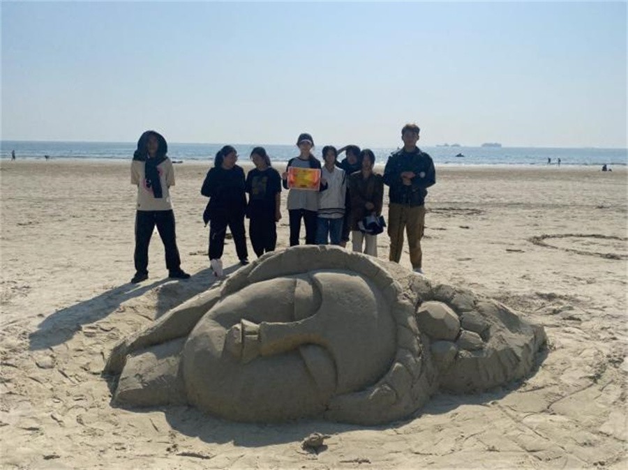 据悉,此次活动由教师进行课前布置,学生以小组为单位进行资料收集,学习党史、海洋文化、中国传统文化以及地方少数民族文化,进行沙雕设计,经过思考筛选,最终确定十一套设计方案。学生在实践活动中,先后完成草图设计、泥塑小稿制作、沙雕放大三个主要环节,最终完成了十一座生动形象、各具特色、主题突出的沙雕作品。