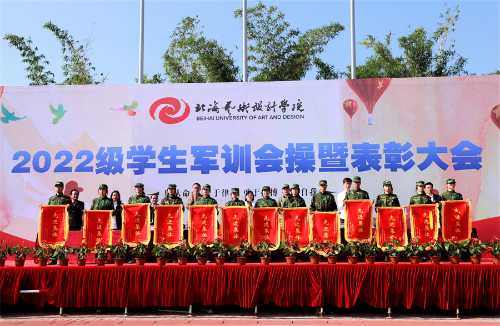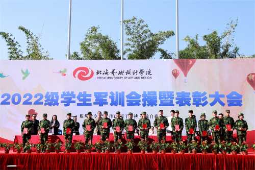 北海市海城区人民武装部政委王鑫在讲话中表示,此次军训时间安排紧、科目内容多、训练强度大,是一次体力与意志的较量、纪律与服从的检验。他对全体参训学生能够克服困难,出色完成所有军训任务的优良表现给予了高度评价和充分肯定。他强调,强国必须强军,军强才能国安,国防和军队建设,是国家安全发展的坚强后盾。近年来,北海艺术设计学院高度重视征兵工作,出台各种优待政策,鼓励学生积极报名参军,每年都有大批优秀学子走入军营,建设国防。他表示海城区征兵办作为学校学生应征入伍工作的办事机关,将继续竭诚为学校和广大学子做好应征入伍的各项工作。他呼吁我校广大学生在完成学业后,积极携笔从戎,参军入伍,为加强国防和军队现代化建设,实现建军一百年奋斗目标贡献力量。
