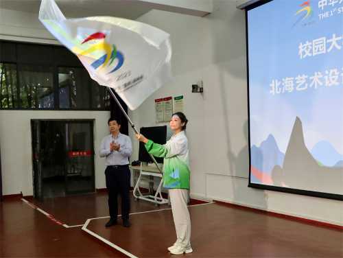 党委副书记彭仁为学青会志愿者代表进行授旗仪式