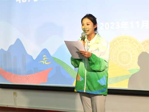 11月1日下午,第一届全国学生(青年)运动会足球比赛志愿者出征仪式在我校伦理楼107举行。学校近100名志愿者在现场郑重宣誓,表达对做好本次学青会足球比赛志愿服务的坚定决心。第一届全国学生(青年)运动会志愿者经理、市旅游文体竞体科局科长陈瑛,我校党委副书记彭仁,团市委宣传部负责人叶婵及我校全体志愿者和带队老师参加仪式。
