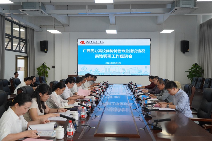 11月9日,教育厅“广西民办高校优势特色专业建设情况实地调研”工作组专家自治区教育厅原一级巡视员唐耀华、广西国际商务职业学院原党委书记陆耀新、南宁师范大学教授黄艳芳、广西电力职院干部戴兵一行到我校开展实地调研指导。我校副校长陶立阳、黄侃明、包建明及相关部门单位、二级学院负责人出席会议。