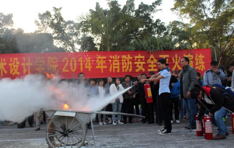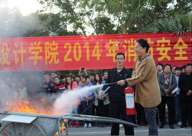 为了提高学院的消防安全管理水平,增强师生员工在紧急情况下的应变能力和自我防护能力。我院于2014年12月19日16点30分举行了2014年度消防灭火演练。学院常务副院长张建虹、副院长张跃、林秀琪、彭仁应邀出席,各班级义务消防员、各班主任、辅导员、学院各部门代表参加了演练活动。