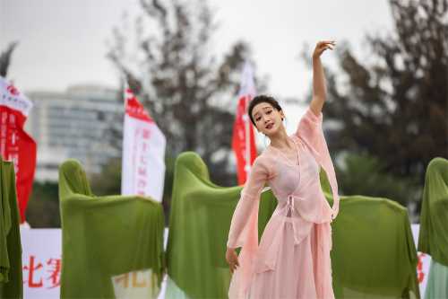 开幕式上,精心准备的节目各具特色,暖场歌舞让全场气氛开始升温,拉开沙滩运动会帷幕。精彩的文艺表演,吸引观众目光、赢得阵阵欢呼,北艺学子结合专业特色在美丽的银滩上一展风采。