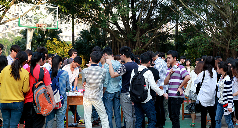 随后,现场马上开始了紧张激烈的“释放心灵”手指绘画比赛。本次比赛放弃传统的画笔创作,取而代之的是看似平凡无奇的手指,蘸上颜料,根据自己的感觉在画纸上自由的舞动。每一位参赛选手就像一个钢琴演奏家一样,用自己精湛的指法为我们谱写出一段段美妙的乐章。本次手指比赛共有50多位同学参与,现场绘画作品共产生20余幅,此次评选将分为现场评审和网络投票两个阶段进行,作品最终得分由现场评审(占60%)和网评投票(占40%)两部分组成。