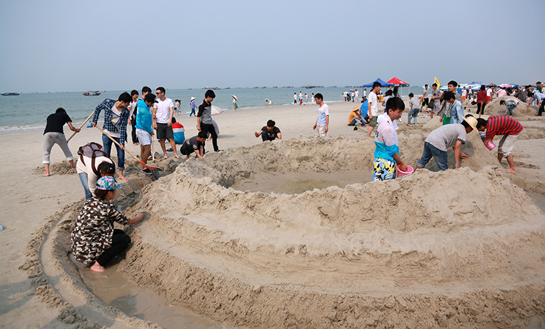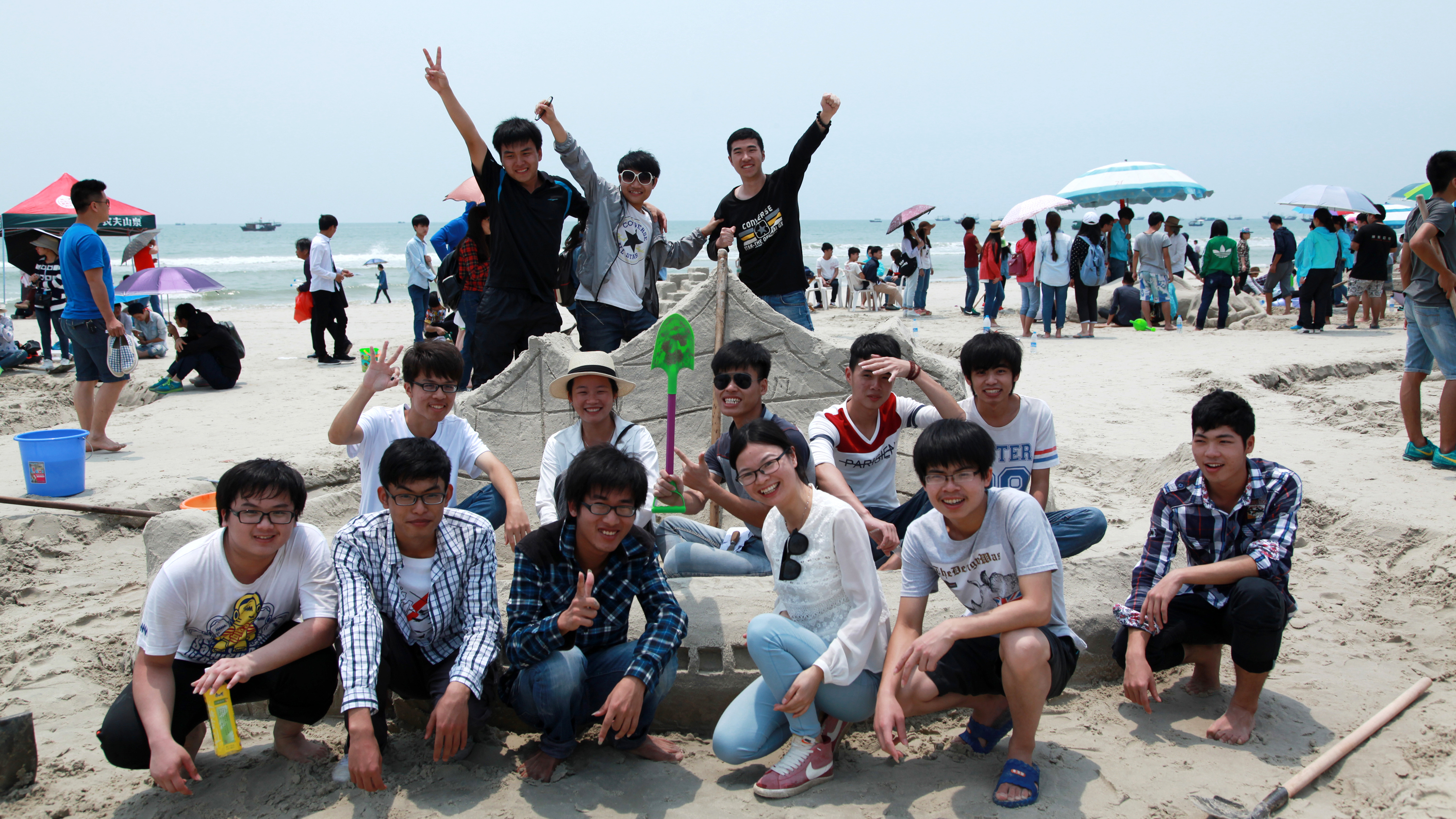 与此同时,沙雕比赛也在紧张进行当中。各班参加沙雕制作的同学,在海边规定的区域内进行各自的沙雕创作。放眼望去,海滩上高手云集,挖沙、铲沙,堆沙,筑造,各班参赛队伍忙碌起来有条不紊、井然有序。中午1:00,各班参赛作品基本完成。一件件精美的沙雕艺术作品展现在全体师生和广大游客面前,赢得了大家的争相拍照和啧啧称赞。