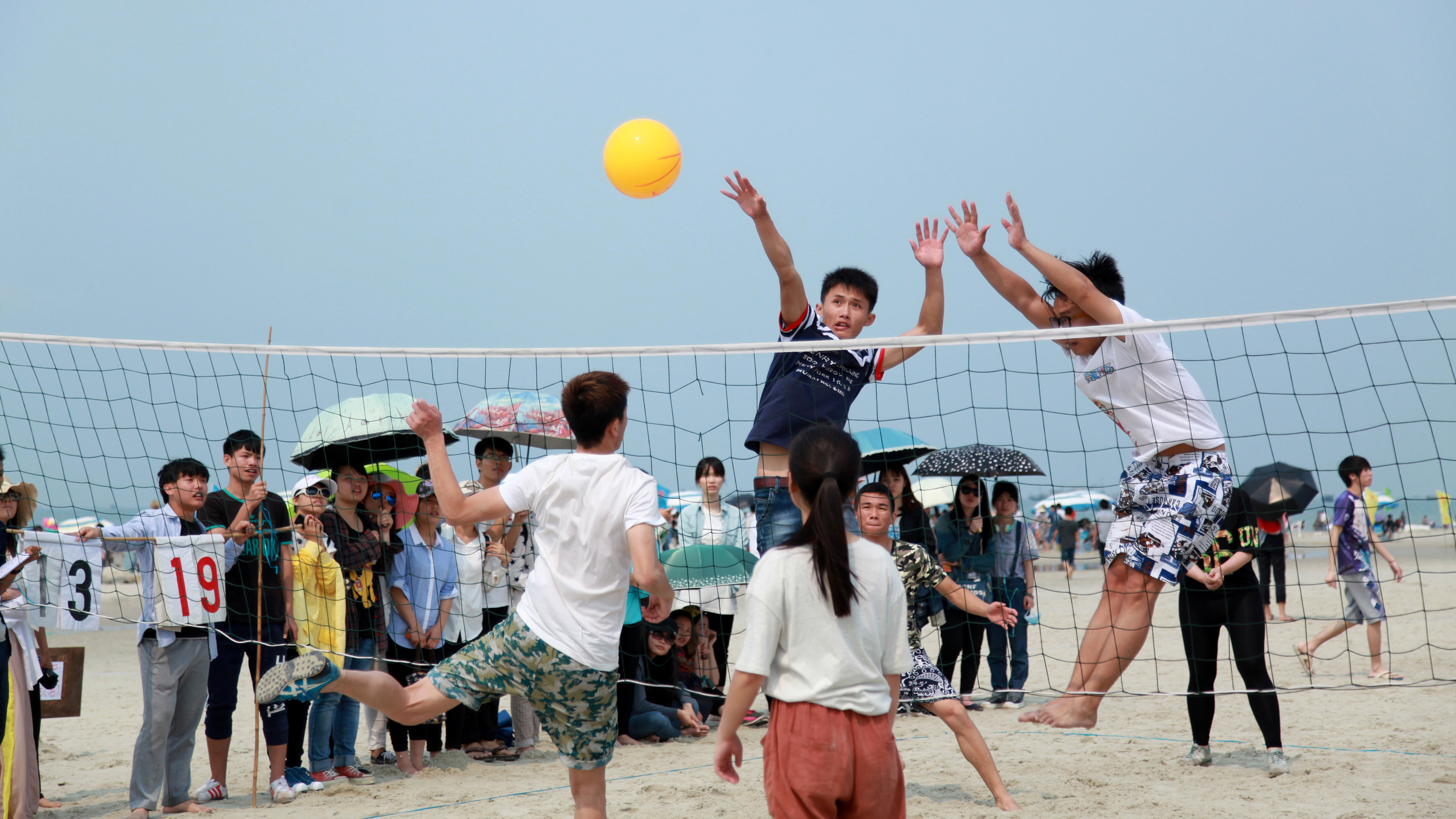伴随一声枪响,全院师生迎着朝阳积极奔赴各个项目竞赛场地,开启朝气蓬勃的一天。本次沙滩运动会除了安排有8×50米迎面接力,排球等传统竞技比赛项目之外,还安排了拔河、六人七足、笨猪跳等趣味竞技项目。各班参赛队伍奋力拼搏、配合默契,在各个项目中尽情展现青春力量。六人七足和笨猪跳比赛中,队员们考默契、拼团结,努力将步伐协调一致;8×50米迎面接力赛场上,队员们克服沙滩上举步维艰,奋力向前奔跑,传递掌心的力量;拔河比赛中,各班参赛队员伴随响亮的口号,卯足了劲、憋红了脸争夺绳子上象征胜利红布条;沙滩排球赛强手倍出,一个个跳跃的身姿展现着激情与力量。