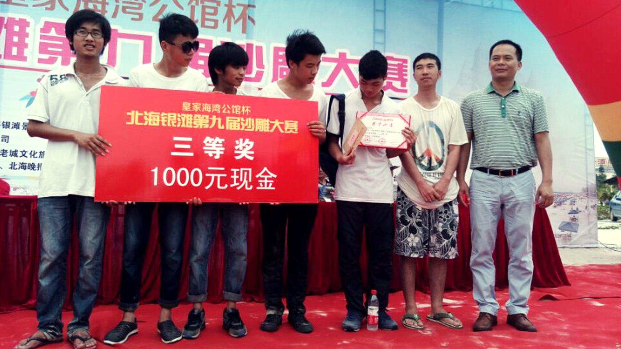 2015年5月2日,2015“皇家湾公馆杯”北海银滩第九届沙雕比赛在北海海滩公园如期举行。比赛共吸引了区内外61支队伍参赛,参赛队伍数量当属历届之最,可谓是“异常火爆”。我院作为北海唯一一所二本院校应邀参加,由潘建荣、李宗毅和陈丽等三位老师带领8支队伍参赛。在本次比赛获奖的15个队伍中,我院师生披荆斩棘,拿下了其中三分之一的奖项。