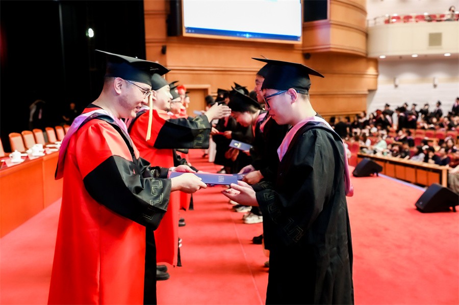 学校领导及学位评定委员会委员为毕业生颁发证书