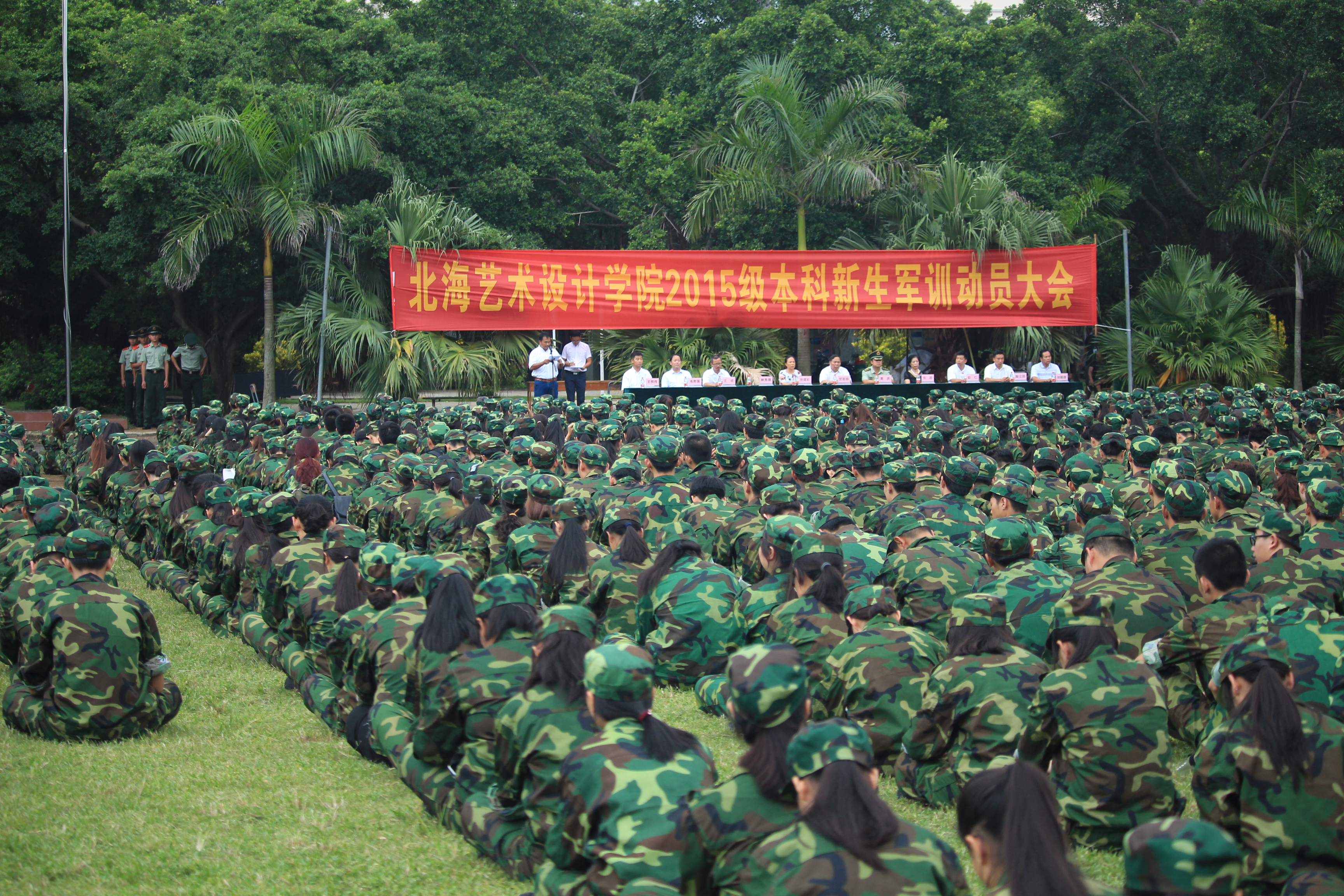2015年9月8日,我院2015级本科新生在学院操场举行了隆重的军训动员大会。会议由我院学工处副处长庞定坤主持,北海市边防支队机动大队大队长黄庆和我院领导出席了本次动员大会。