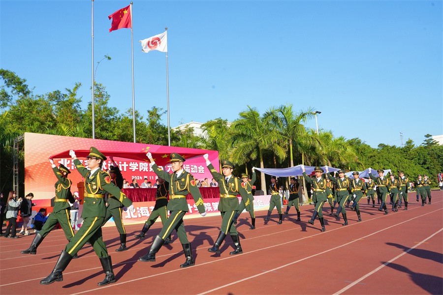 在学校党委书记覃宪儒的高声宣布下,礼炮直冲云霄,彩烟绚丽飞扬,一年一度的校园运动会就此火热开场。北海艺术设计学院第十六届运动会正式进入为期两天的比赛日程。