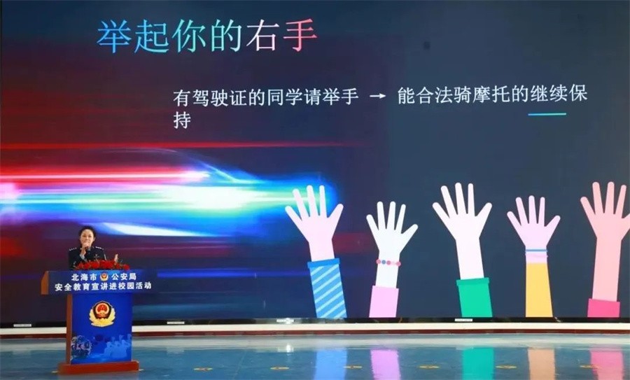 市公安局相关单位,海城分局、银海分局民警代表,北海艺术设计学院相关领导及师生代表800余人参加。
