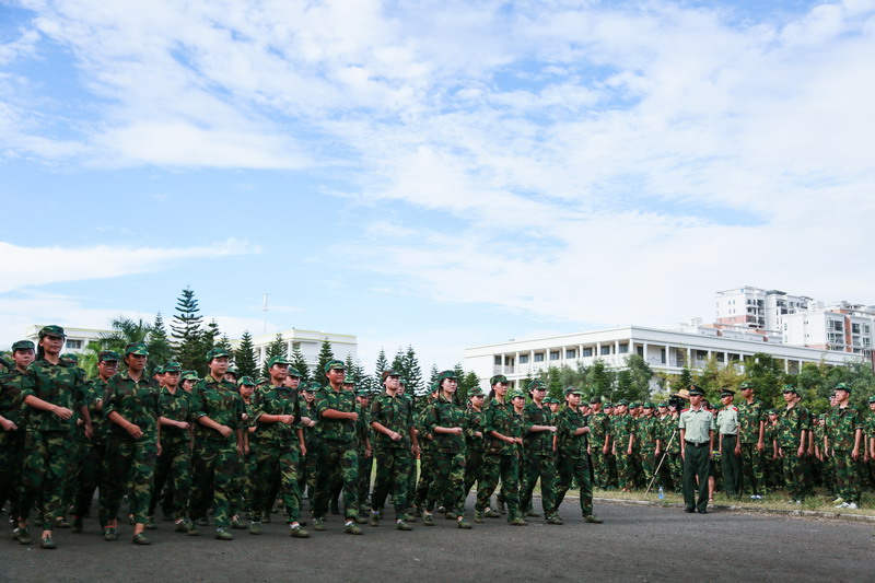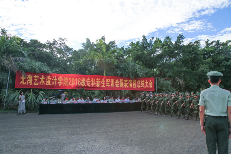 2016年9月24日下午16:00,我院2016级专科新生军训汇操暨总结表彰大会在学院东校区操场举行,大会由学院学工处副处长覃柳芳主持。武警北海市边防支队黄晓夏副参谋长,学院党委副书记、副院长林秀琪,学院党委副书记、副院长彭仁,副院长胡胜,副院长王斌,院长助理刘朝雄,及二级学院部分领导老师受邀出席了本次大会。全体2016级专科新生、班主任和教官参加了此次军训汇操表演。