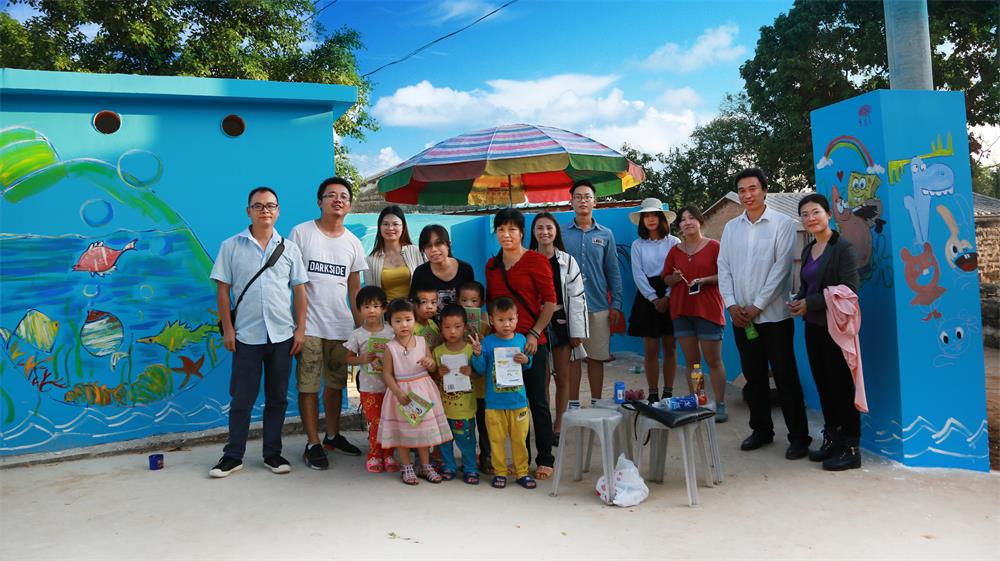 写生期间,童心幼儿园园长通过岛民联系到正在涠洲岛进行写生活动的动画学院常务副院长陶立阳,希望能给予幼儿园的美术老师一些绘画上的指导,并帮助他们美化校园。利用休息时间,陶院长带领部分专业课教师以及数字媒体专业的学生们来到童心幼儿园,开展帮扶活动。