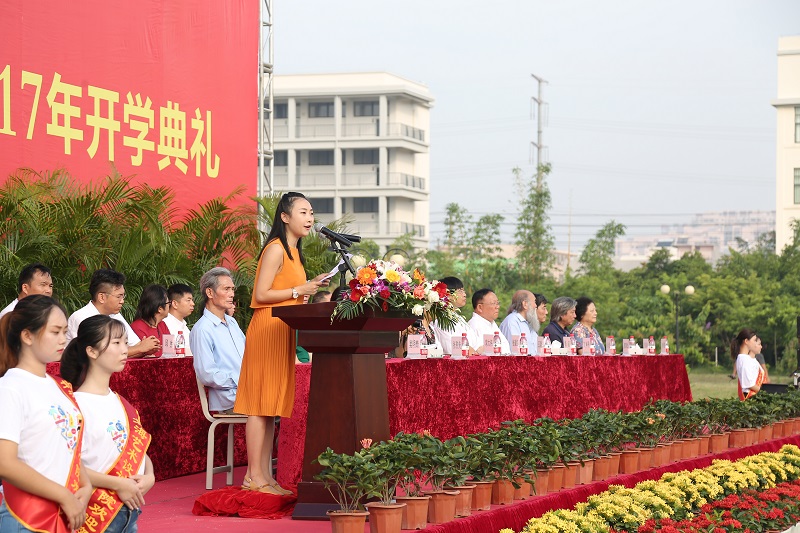 王国伦院长在典礼上致辞。王院长表示,学校办学18年来,在秉承北京著名艺术高校培养模式的同时,融合北部湾海洋文化特质,形成了自身独有的办学特色和育人氛围。在“道 德”校训和“德为魂、艺求神”大学精神的熏陶下,一批又一批的北艺人在这里学习成长,并从这里走向广阔天地。王国伦院长对2017级新生提出新的期望:从习惯被安排到学会主动担当,从被动学习到自主探究,从跟随别人到独立思考,注重开阔视野、健全人格的培育。希望广大师生积极参与学校建设发展,努力迈向世界知名大学的行列。