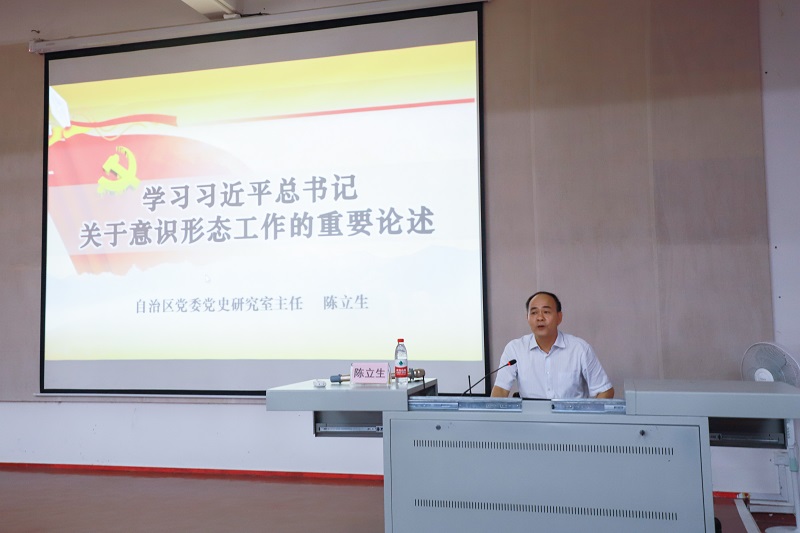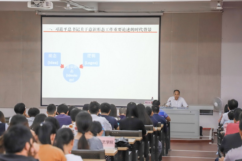 陈立生主任作了《学习习近平总书记关于意识形态工作的重要论述》专题报告。他剖析了意识形态的时代背景、当前国家意识形态工作的形势以及习近平总书记关于意识形态工作的新思想、新理念、新要求,深刻抨击了历史虚无主义的弊端和危害。作为高校教师,要坚定思想信念,坚决反击历史虚无主义,自觉担当国家主流意识形态阵地的守护者。