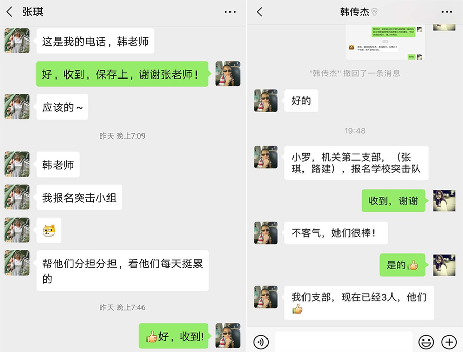 针对开学后应对学生突发情况的任务越来越重,党委向各党支部发出征集党员突击队员的号召,通知一经发出得到了党员教师的积极响应。建筑学院党支部蒙奎宇:“只要党组织需要,我就上。” 机关第二党支部张琪:“我报名突击队,帮他们分担分担,看他们每天挺累的。”机关第一党支部文娇丽:“有需要,我可以去。”打赢校园疫情防控保卫战,党员教师用行动书写师者情怀,用担当履行入党誓言。