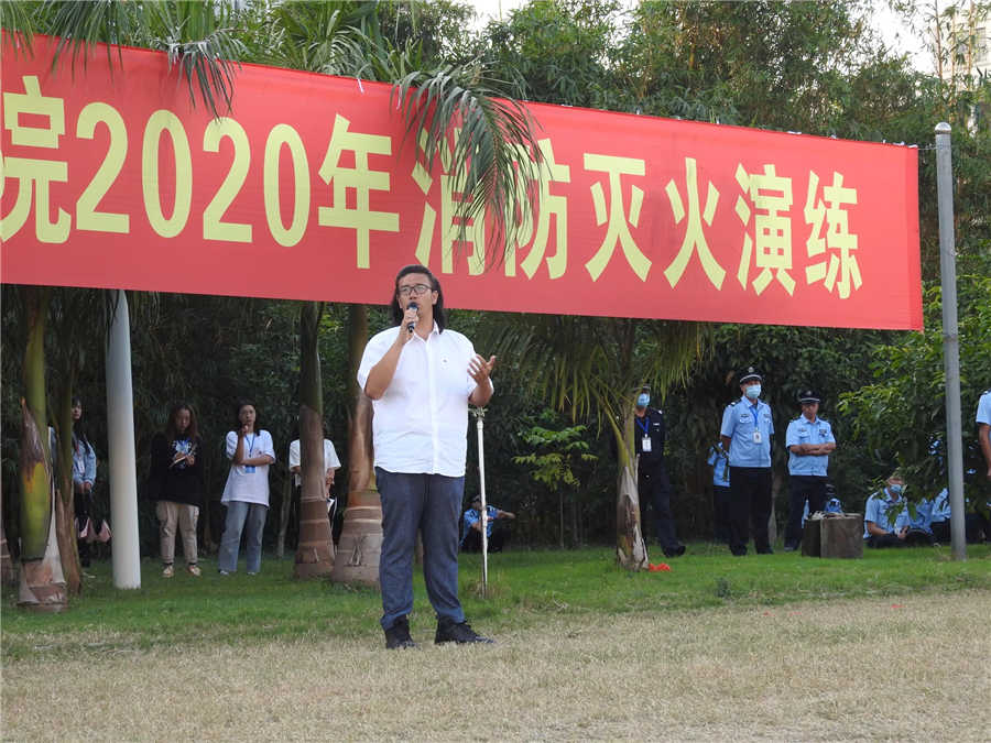演练开始之前,党委副书记、副校长彭仁发表讲话。通过两起火灾案例,他告诫同学们要牢记消防安全知识,引以为戒,提高安全防患意识和责任。要警惕身边潜在的火灾危险,严格遵守学校宿舍管理的相关规定,学会消防器材的使用,杜绝安全事故的发生,努力营造平安和谐的工作、学习环境。