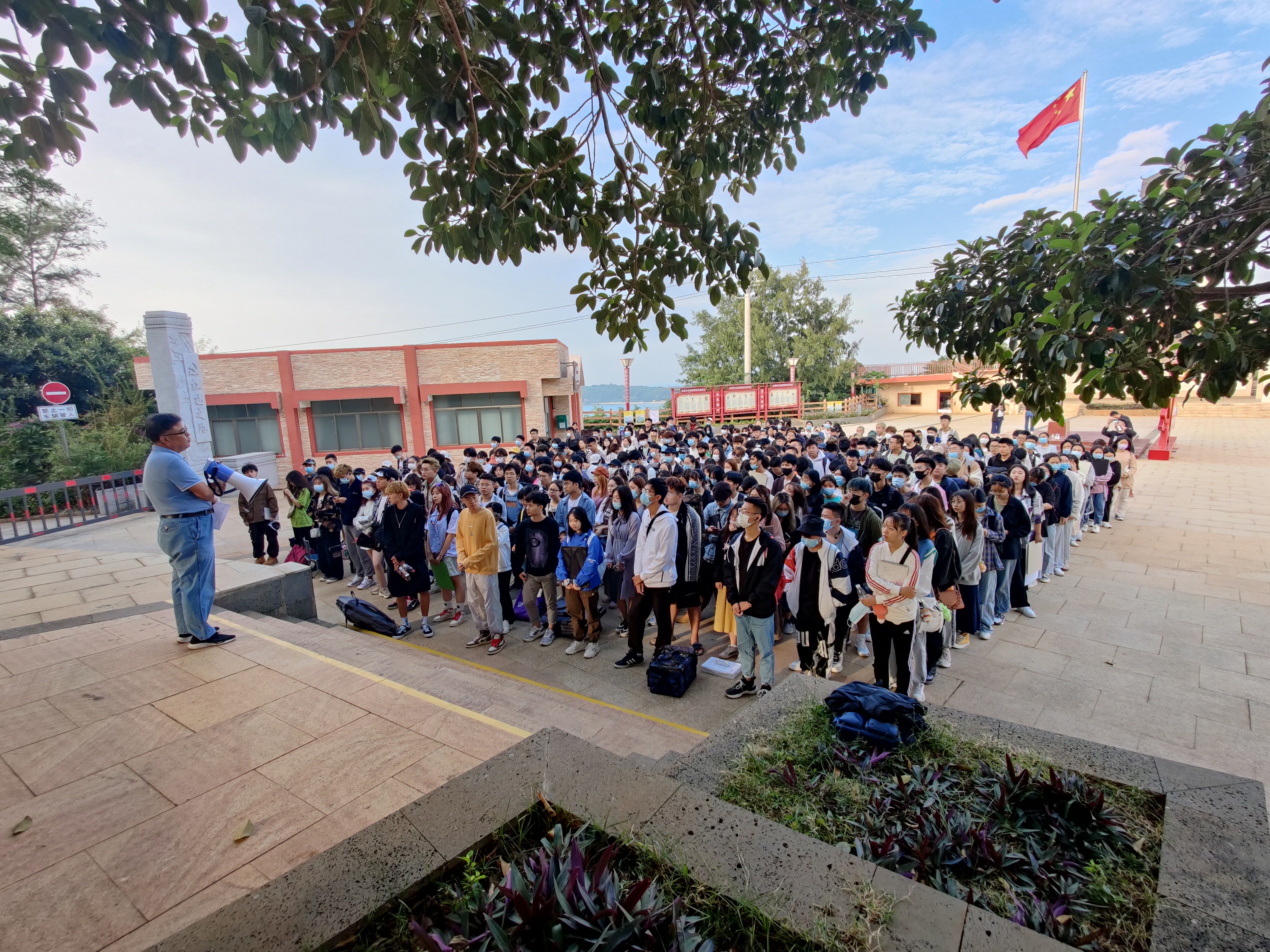 10月20日,思政部主任姜献生教授跟随第一批学生安全抵达涠洲岛,在学生写生过程中途经涠洲岛红色广场,向学生讲述了涠洲岛的革命斗争史,教育学生感恩先烈、珍惜当下,同时号召学生爱护岛上环境、友善待人,开展了生动的思政红色主题教育。
