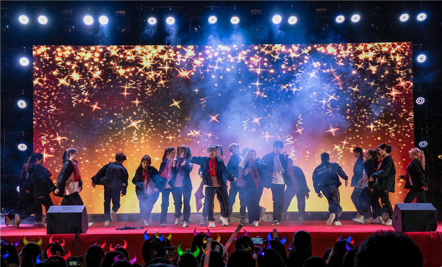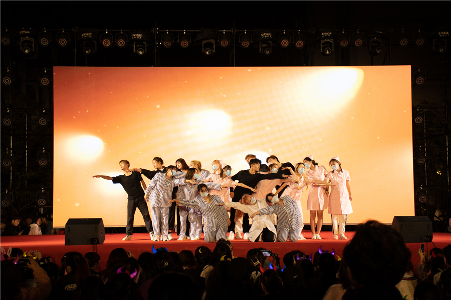 洪金磊,姚铭晗合唱的《虎口脱险》,深情无比,令人动容,台下掌声连连;拉丁舞《拉丁串烧》奔放自信的魅力在眉目间流转,热情轻快、酣畅淋漓让人心动于舞蹈的魔力之中。街头文化社说唱部带来的《红色》,流行的音乐形式演绎中国红色精神,热血的歌声飘荡在校园; 由舞表1902的同学带来舞蹈《纸扇生花》,表演者手握纸扇,端庄高雅、可谓意气风发。