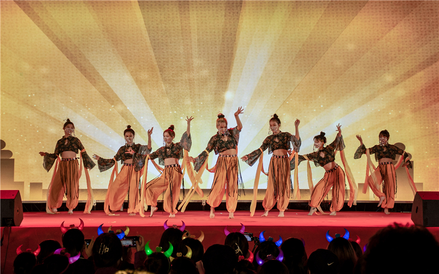街头文化社演绎的舞蹈《重生》如凤凰涅槃、浴火重生。动感的旋律、酷炫流畅的配合、柔软的肢体舞动出生命的灵动与青春的活力;服饰20级和播音20级同学带来的诗歌朗诵《一梦敦煌》,渲染出古韵风采,舞姿翩翩若惊鸿,仿佛梦回遥远的敦煌令人陶醉其中。