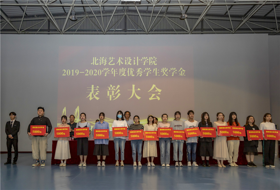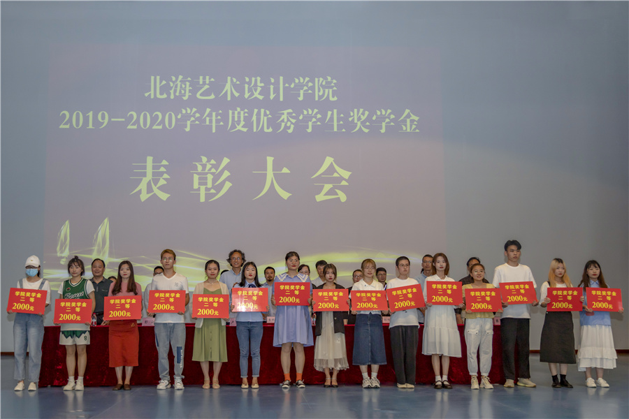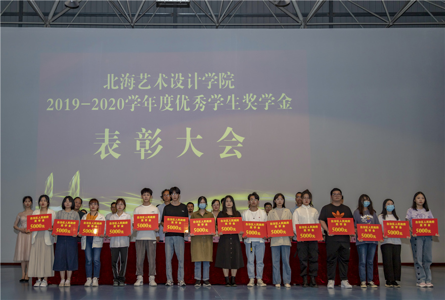 大会在雄壮的国歌声中拉开序幕,党委书记张阳宣读了表彰决定。与会领导依次为获得国家奖学金、国家励志奖学金、自治区人民政府奖学金、北海艺术设计学院优秀学生奖学金获得者颁奖。