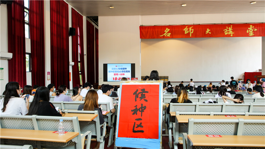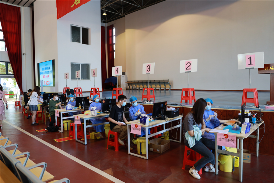 截止5月15日,在校内临时接种点已完成7600余人新冠病毒疫苗接种。(张文桦、李斯玥、张包菡/摄)