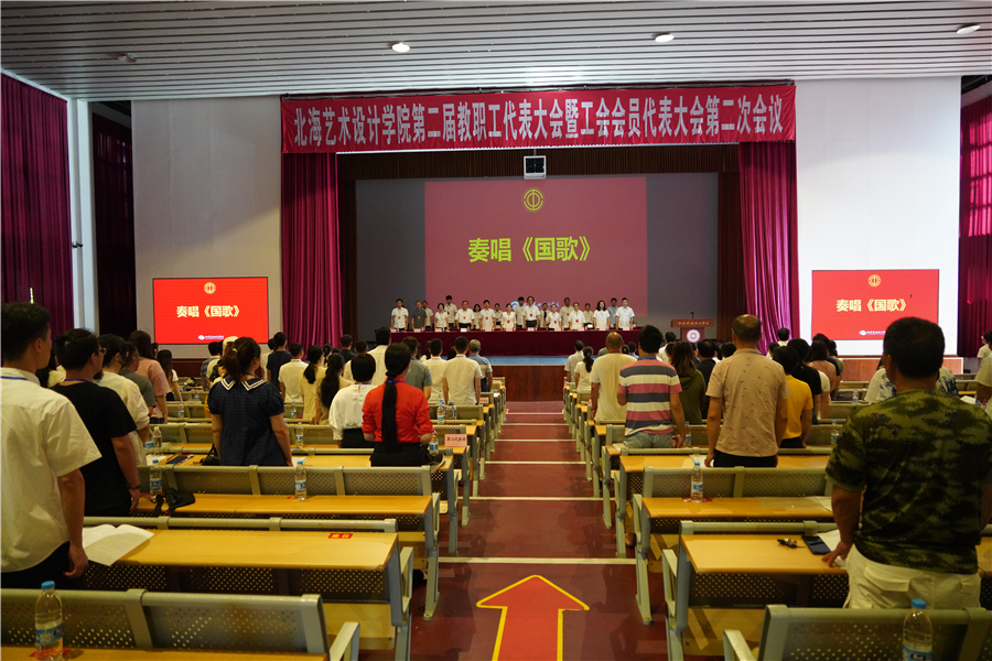 7月4日上午,北海艺术设计学院第二届教职工代表大会暨工会会员代表大会第二次会议在学校西校区大礼堂召开。学校领导张阳、卢新华、贺争平、彭仁、韦静月、张建虹、张跃、胡胜、王斌、邱杰、陶立阳出席会议。130余名正式代表、列席代表参加会议。