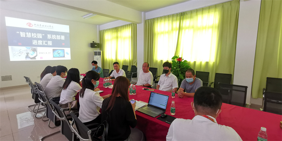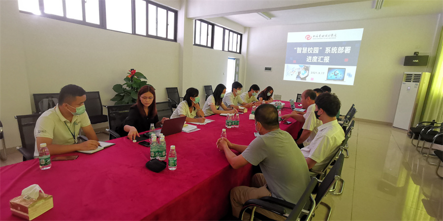9月17日下午,北海艺术设计学院智慧校园项目组在南校区工地办公楼三楼会议室召开了“智慧校园”系统部署进度汇报专题会。会议对学校当前各项信息化项目的完成进度和工作安排计划进行汇报,合作双方针对项目问题积极沟通协调,就项目下一步发展进行工作部署。