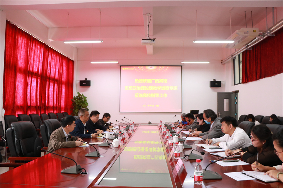 11月16日,由广西警察学院党委书记覃干超教授,广西师范大学党委宣传部部长、马克思主义学院院长汤志华教授,广西建设职业技术学院马克思主义学院副院长赵胜营教授,广西警察学院马克思主义学院副院长尹彦教授组成的全区高校思想政治理论课教学巡察专家组一行4人到我校开展教学巡察工作。学校领导张阳、卢新华、彭仁、韦静月、陶立阳、刘朝雄,各相关职能部门、马克思主义学院负责人及思政课教师代表参加了本次巡察工作的汇报会和反馈会。