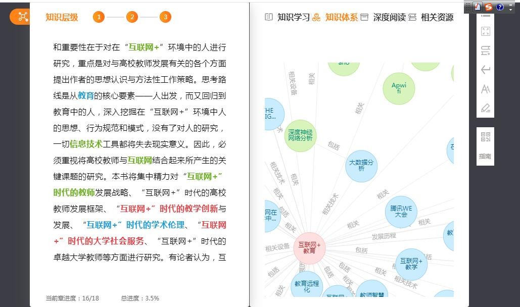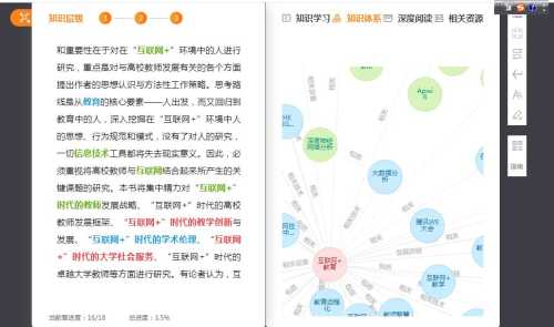 “知识阅读”是一种阅读与知识体系完美融合的阅读方式。“可知”知识服务平台通过对知识点挖掘、知识体系构建、信息分析,在细分领域内实现知识点体系化,根据知识点关联各种类型资源,供读者进行网络化、体系化阅读。让读者在阅读一本电子书时,既可以学习与之相关的知识点解释,还可以根据知识体系的指引快速获取关联知识内容和资源进行系统性连贯学习。