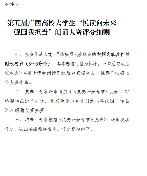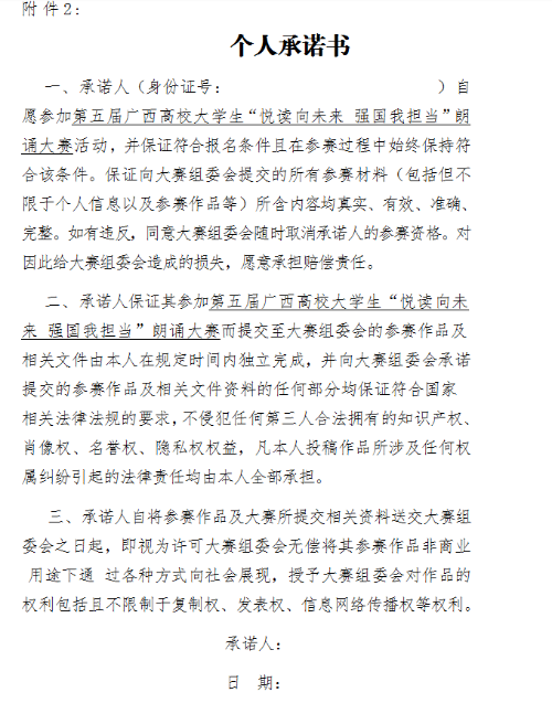 关于组织参加第五届广西高校大学生 “悦读向未来 强国我担当”朗诵大赛的通知