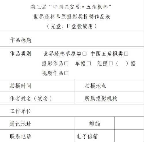 3.“中国五角枫”类作品必须取材于中国兴安盟行政区划范围内,并能指明具体拍摄地点。对于拍摄地域存疑的作品,投稿者应与主办方委托的律师共赴拍摄地,经勘察确定作品在指定地域范围内拍摄的,有关律师费、差旅费等由主办方承担;经勘察无法确定作品在指定地域范围内拍摄的,有关律师费、差旅费等由投稿者承担;投稿者未配合勘察的,其作品的入展资格将予直接取消。