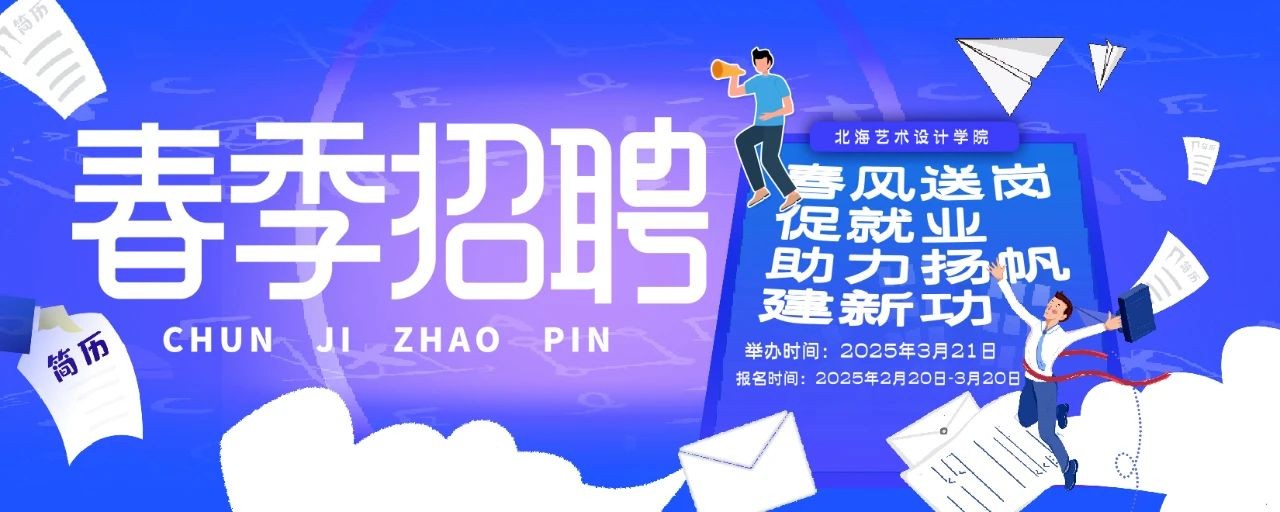 为促进我校毕业生顺利就业、尽早就业,现定于2025年3月21日于北京实践基地(北京邮电大学宏福校区)举办“北海艺术设计学院2025届毕业生春季双选会”(以下简称“双选会”)。诚邀各用人单位报名参加。本次双选会为公益活动,不对任何参会单位及学生收取费用,诚邀各用人单位参会选聘人才!