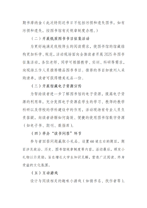 图书馆“特别还书日”图书逾期免罚 活动通知