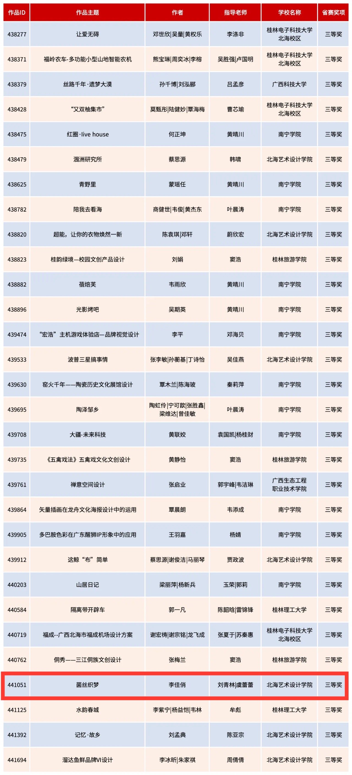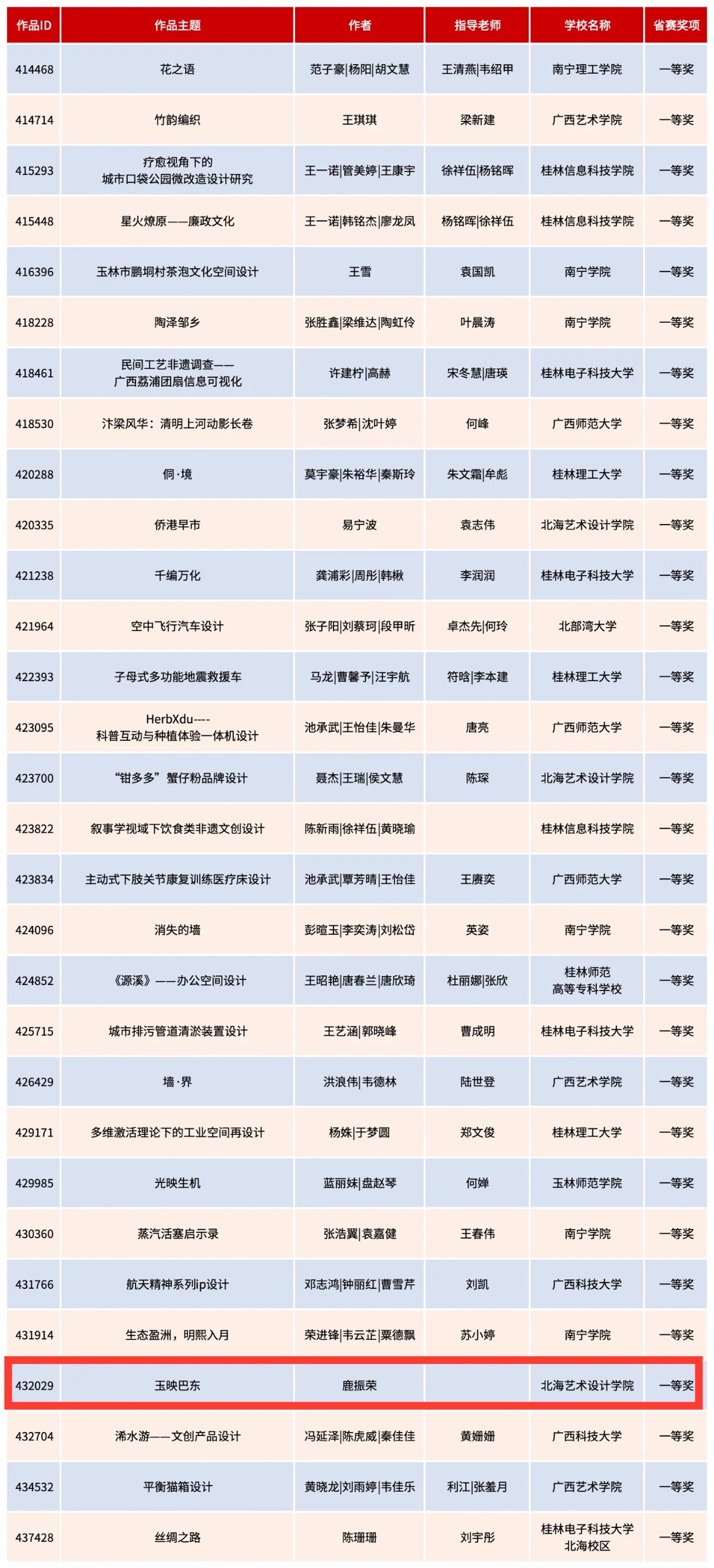 获奖通知|第九届“米兰设计周-中国高校设计学科师生优秀作品展”非命题赛场广西赛区获奖名单公示