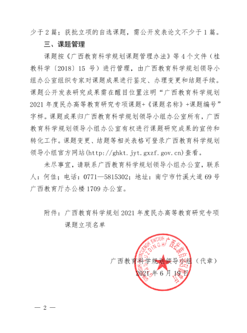 广西教育科学规划领导小组关于公布广西教育科学规划2021年度民办高等教育研究专项课题立项名单的通知